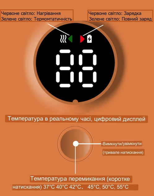 - Температурні режими: 37/40/42/45/50/55 ℃